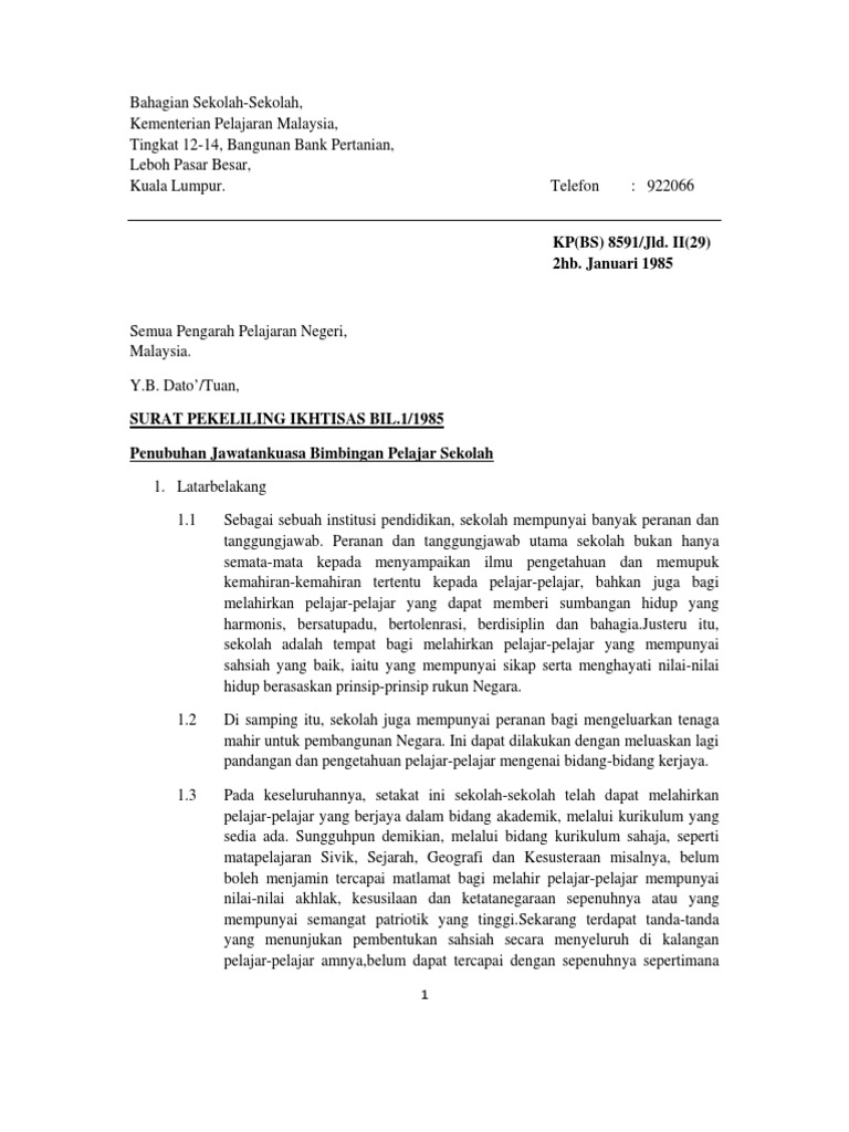 Surat Pekeliling Ikhtisas Bil 1 1985 Pdf